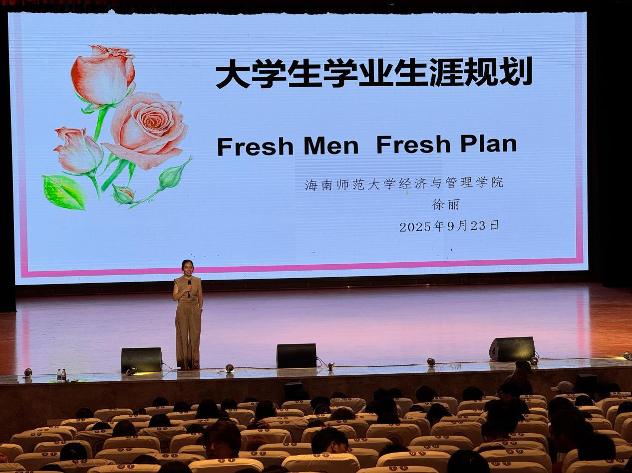 9月23日晚,经济与管理学院2025级新生入学教育讲座在桂林洋校区大学生活动中心报告厅举行。本次教育的主题是“理想信念教育和大学生学业生涯规划教育”,由2025级新生辅导员徐丽老师主讲,2025级全体新生参加。