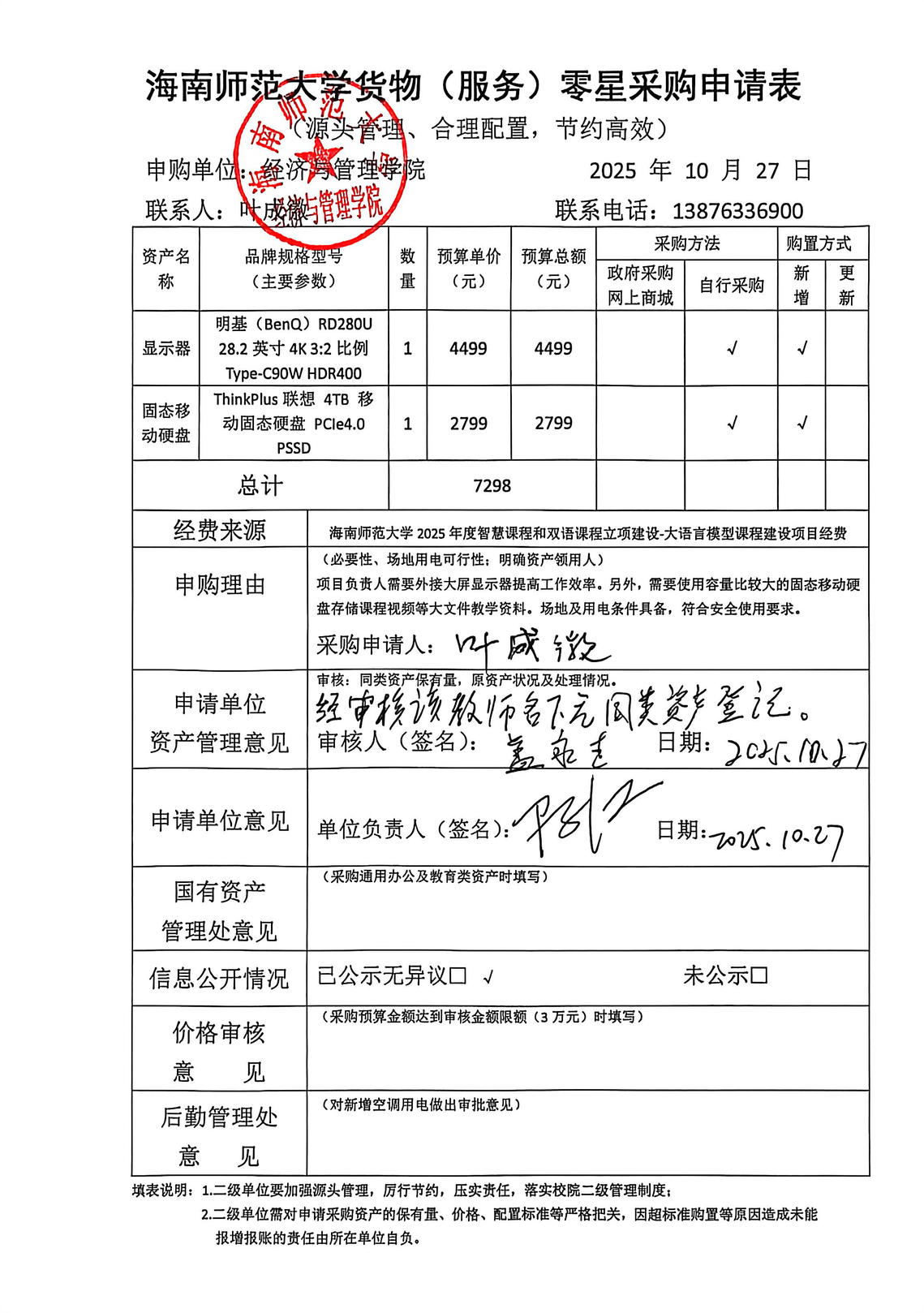 购买个人教学科研办公设备公示