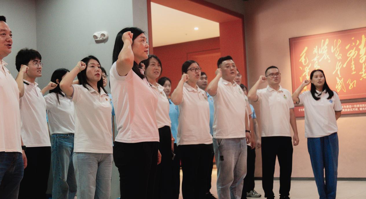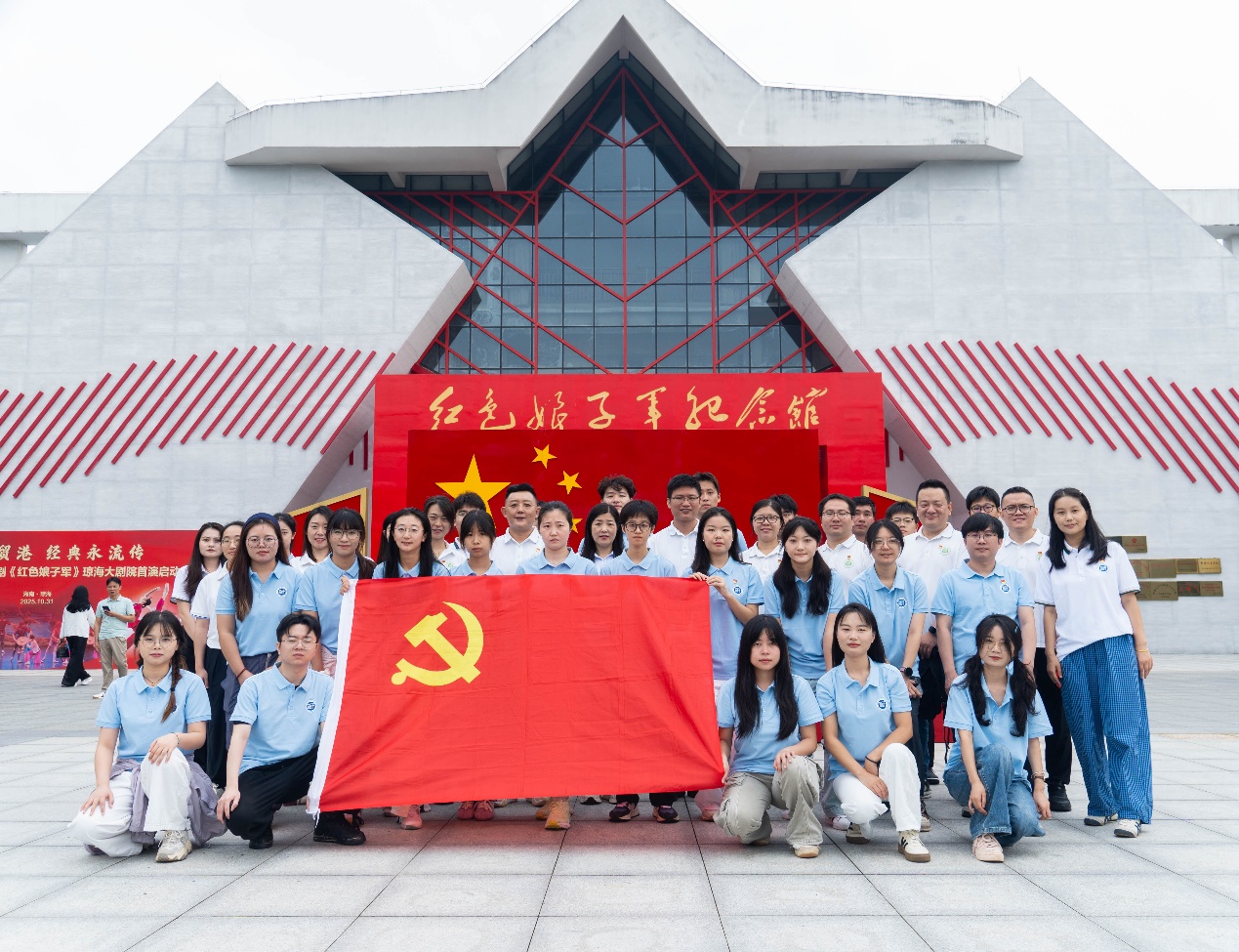 上午,研学团队首先抵达红色娘子军纪念园,围绕“崇德尚学秉初心,求是创新担使命”主题开展红色教育。走进纪念园,一幅幅泛黄的老照片、一件件承载历史记忆的实物展品、一个个生动再现的战斗场景,全景式展现了红色娘子军在艰苦卓绝的革命岁月中为民族独立和人民解放英勇抗争的光辉历程。在纪念园的党旗下,海南师范大学机关第十三党支部(招生就业处)党员与经济与管理学院研究生党支部党员一起重温入党誓词。铿锵有力的誓言回荡在纪念园内,让在场每一位同学都接受了一次深刻的党性教育和精神洗礼。