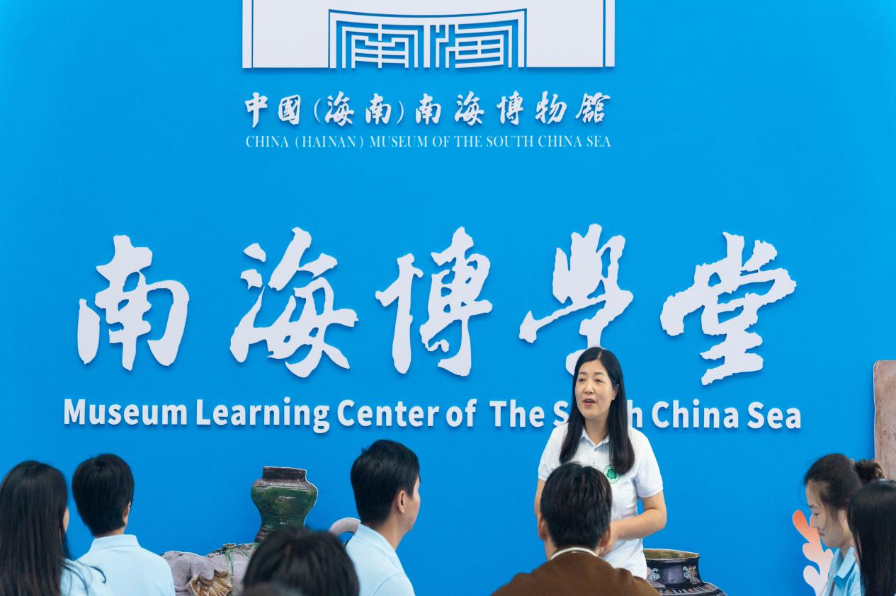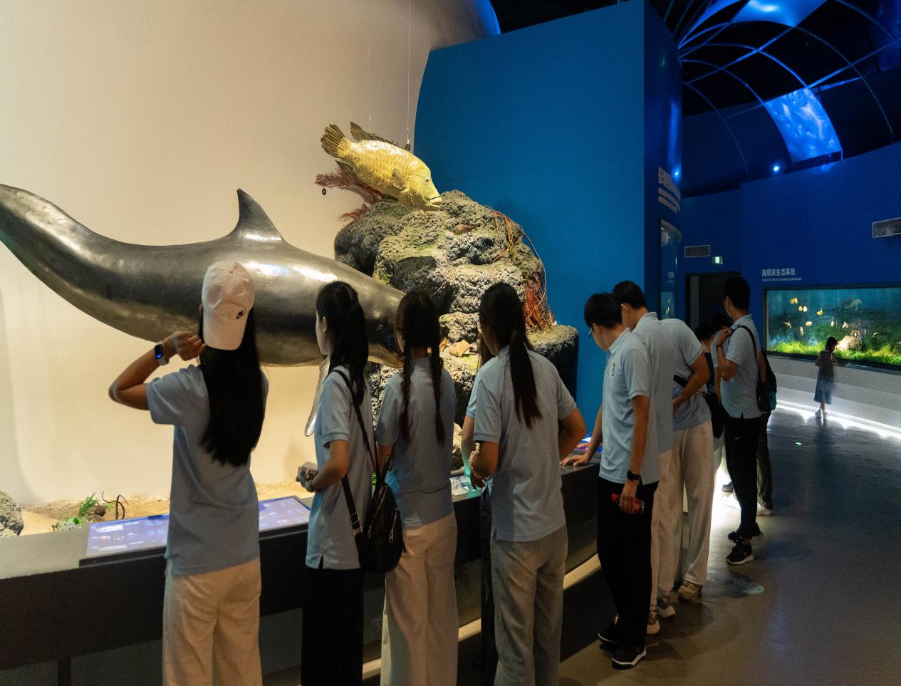 下午,研学活动的最后一站来到了位于琼海潭门镇的中国(海南)南海博物馆。围绕“寻根南海人文,筑梦自贸未来”的主题,师生们在讲解员的引导下,依次参观了“南海人文历史陈列”、“南海自然生态陈列”等核心展厅。博物馆内丰富的馆藏和现代化的展示方式,特别是华光礁Ⅰ号沉船复原场景,给学生们留下了深刻印象。参观过程中,研究生们不仅深入了解了南海的历史变迁、海洋资源开发以及海上丝绸之路的成就,还通过VR设备与沉浸式装置体验了水下考古工作,感受科技与文博的深度融合。这种互动体验让抽象的历史文化知识变得生动可感,增强了学习效果。