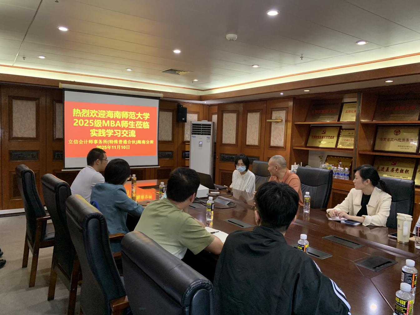 2025年11月10日上午,海南师范大学经济与管理学院教授罗声明带领2025级MBA班全体学生,走进海南立信会计师事务所开展参访研学。本次活动特邀立信会计师事务所(特殊普通合伙)总部权益合伙人、海南分所所长李进华担任主讲,通过“课堂讲授+实地参访”的模式,为MBA学子呈现了一堂生动的审计实务与职业道德教育课。