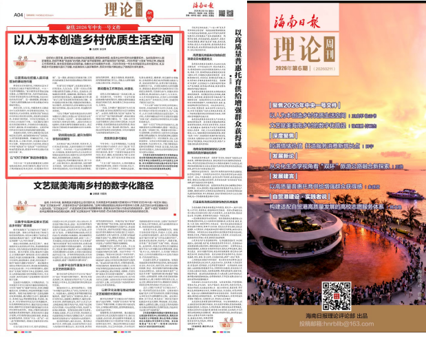 2026年2月11日,《海南日报》理论版刊发我院王成军教授理论文章《以人为本创造乡村优质生活空间》。文章秉持以人为本理念,以乡村优质生活空间为主题,为推进农业农村现代化和改善农村人居环境条件、夯实乡村振兴基础提供重要理论支撑和实践指引。站在“十五五”开局之年的新起点上,持续推进农村人居环境整治,既是一项民生工程,也是一项发展工程。只有让农村环境更加宜居、生活更加便利、生态更加优美,才能不断增强农民群众的获得感、幸福感、安全感,为扎实推进乡村全面振兴、加快农业农村现代化夯实坚实的生活基础。
