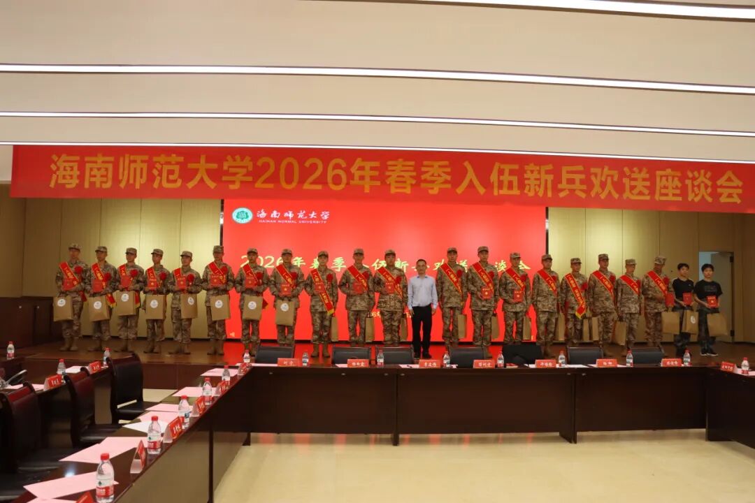 3月16日下午,海南师范大学2026年春季入伍新兵欢送座谈会在龙昆南校区图书馆十楼报告厅顺利召开。校党委副书记符刘才出席会议,我院党委副书记陆娜、分管辅导员、4名入伍新兵及新兵家长参加仪式。